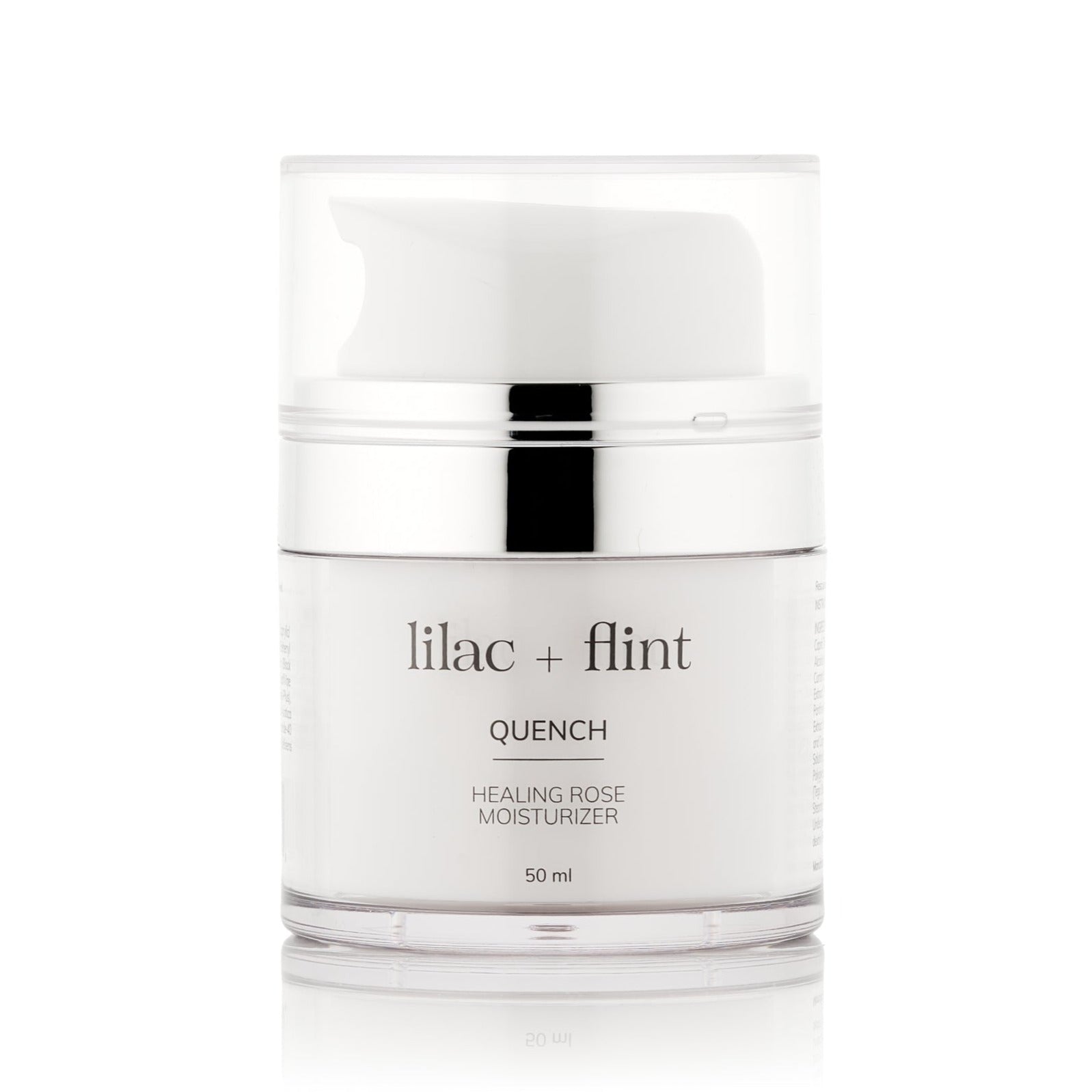 Calm, restore, and deeply hydrate with this luxurious cream for dry, irritated, or rosacea-prone skin. Quench Moisturizer blends soothing botanicals and peptides to visibly reduce redness and support skin barrier repair. Aloe, Pink Rock Rose, and Korean Tiger Grass calm inflammation, while specialized peptides and Mexican Arnica help strengthen skin and ease sensitivity. Lightly scented with rose water for a comforting finish.
